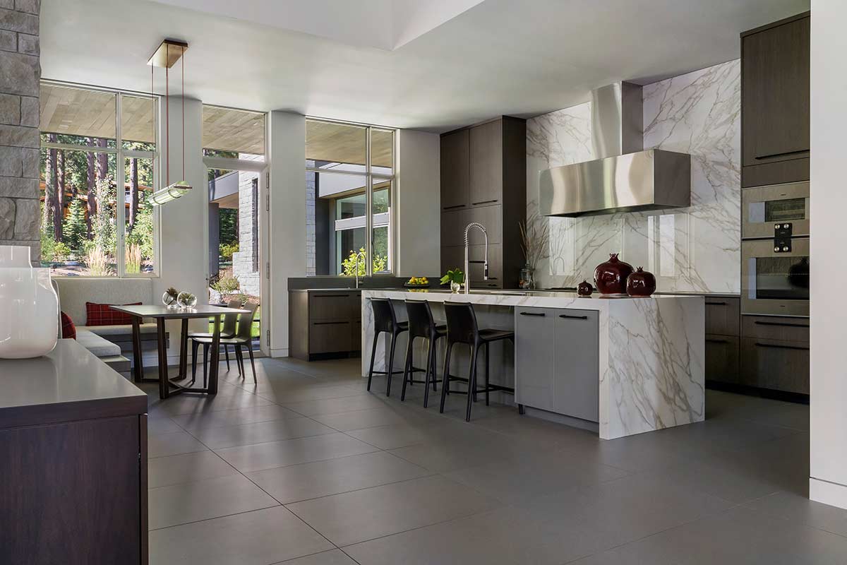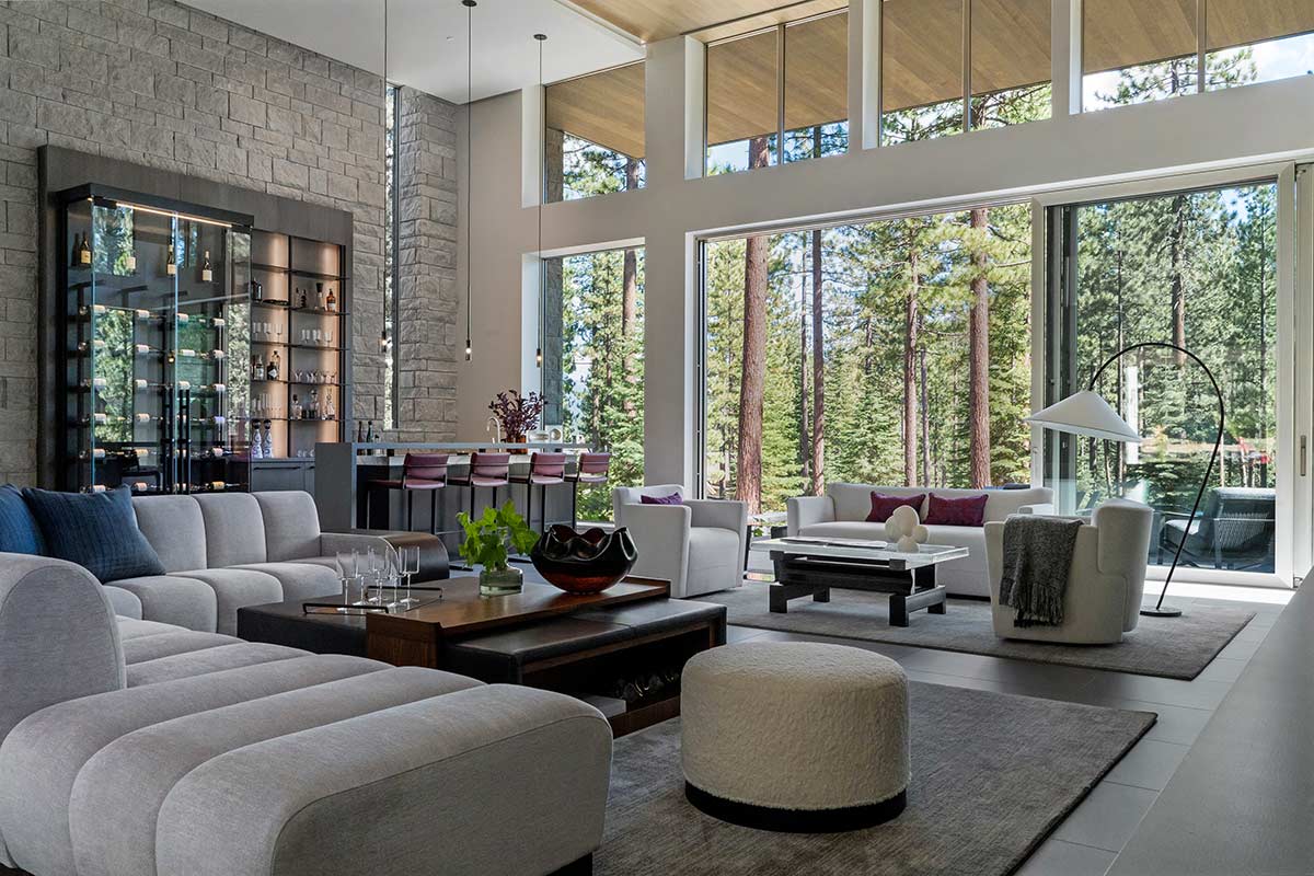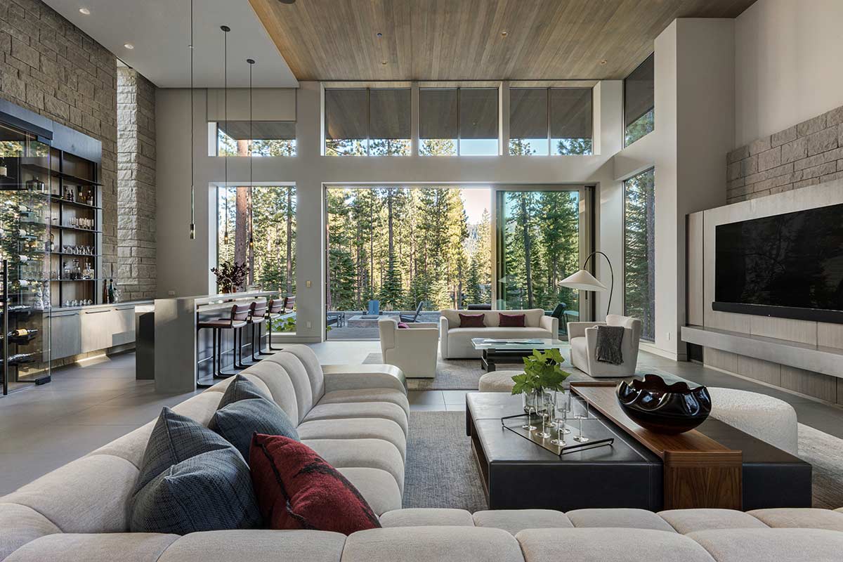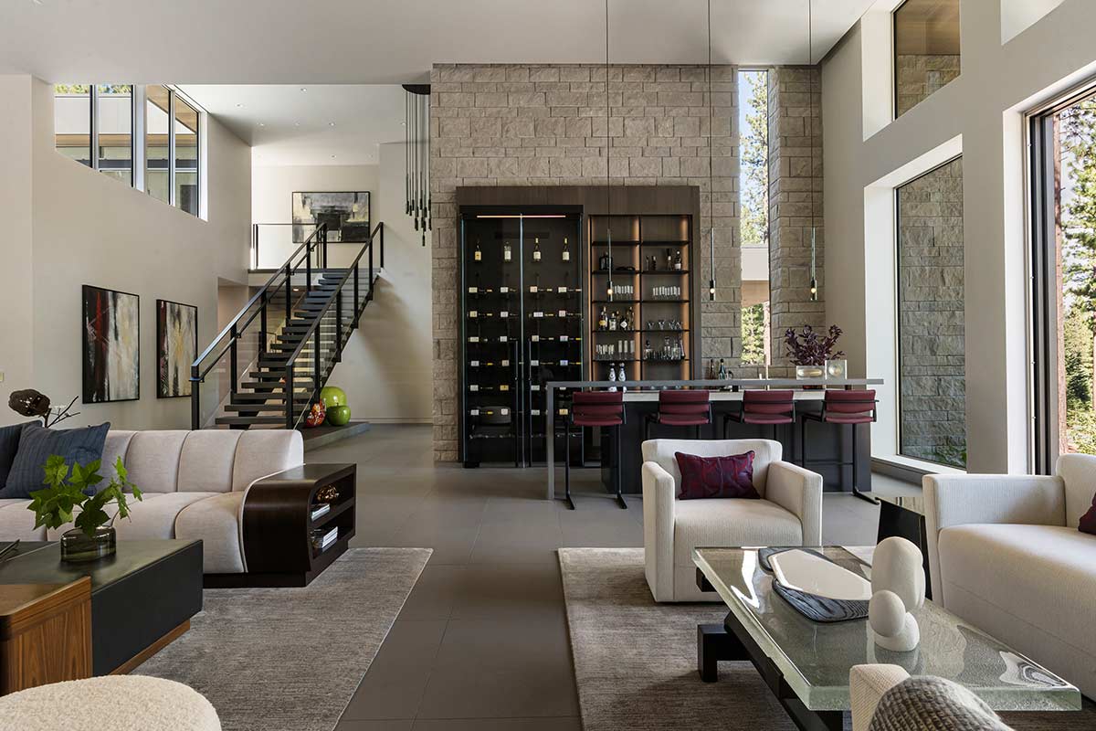 There is only one thing that surpasses the sense of awe one feels when approaching this Martis Camp home, and that is stepping inside. Beyond its striking modern architecture and bold glass swivel front door lies an 8,811-square-foot residence worthy of a feature in any leading architectural publication. Designed by the highly acclaimed Vivian Soliemani, the award-winning interior unfolds like an art gallery, bathed in natural light pouring in through expansive windows.