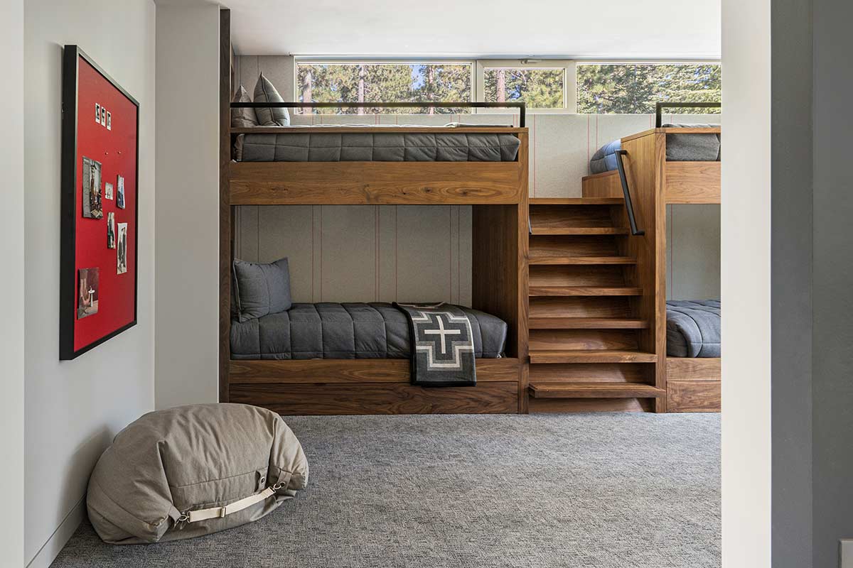 The impressively graceful staircase near the front entry leads to a second level, home to an expansive game room, flanked by two bedrooms and a bunkroom. When the table tennis, shuffleboard, and bocce court have had their turn, there’s always the amazing world of Martis Camp beyond, including the Family Barn and Camp Lodge—just a short bike ride away. Together, this modern home and the comforts of a community renowned for building legacies explain why Forbes proclaims Martis Camp as “Possibly the Best Four-Season Private Community in the U.S.”