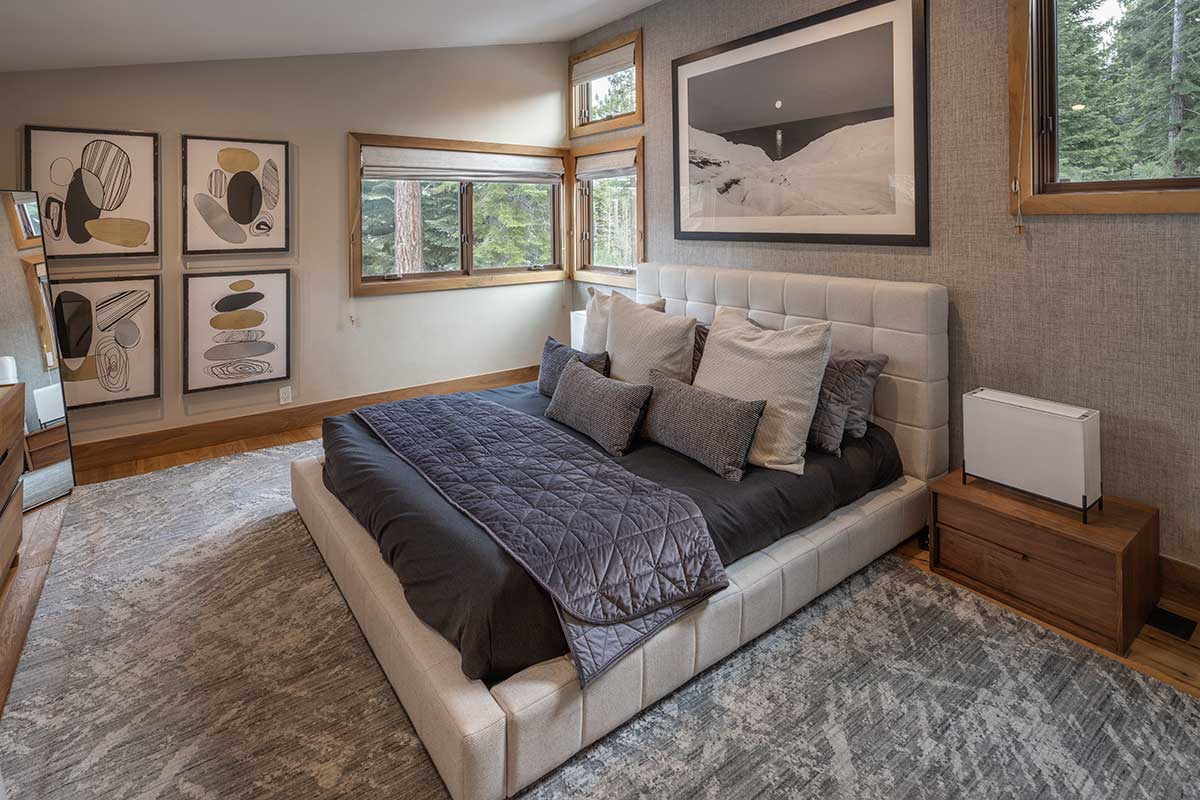 For a moment, you have to remind yourself that you’re in the great room, not the great outdoors. Or is it both? As the southwest corner of floor to ceiling wraparound pocket doors disappear from the great room of this Martis Camp home, the line between the indoors and out seems to completely vanishes. What you’re left with is both a sense of calm and a setting that’s ideal for entertaining. Beyond are soaring pine trees and the allure of a meandering Putting Park fairway just steps from the back patio. That picture is upon you the moment you ascend the stairs to a sunny, inspiring living space with kitchen, dining room and great room and – up an elegant custom staircase – an office loft that seems to levitate in the towering windows. From this perch, the 3rd and 4th hole of the Putting Park unfolds below you and Lookout Mountain rises in the distance – making this home the ideal location for gathering and building a lifelong legacy with family and friends. The living area shares this view and has immediate access to the deck with barbecue bay and fire pit. Further down the hallway of this 5 bedroom, 4.5 bathroom, 3,250 square-foot home is a bedroom and the primary suite, both with access to a hot tub with Putting Park views. Midway down the main staircase is another level that leads to a bedroom, office/5th bedroom, and junior suite. The patio that encircles this home calls to you to grab your putter and golf balls and make the 30-second stroll to the greens of the award-winning Dick Bailey designed Putting Park.