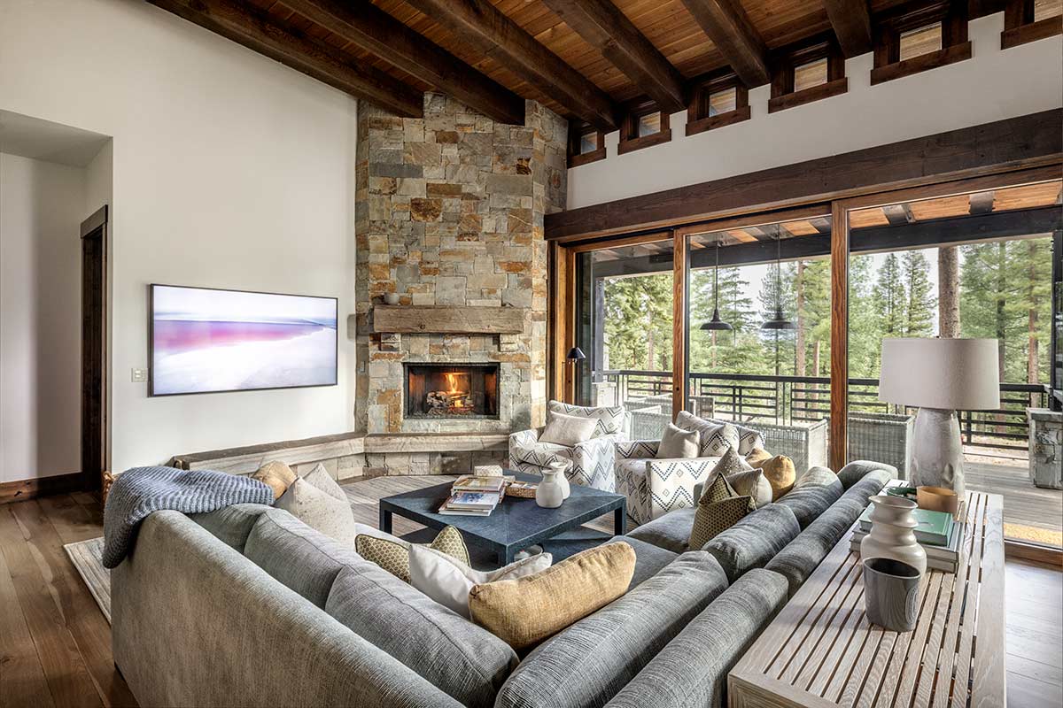 When the day gets off to an early tee time, chances are you’ll be pulling up to the 9th hole of the Fazio course just in time for lunch, which can be a very good thing, seeing as this 3,250- square-foot Martis Camp home is located just below the 9th green, perfect for picking up a sandwich before the back nine. And if by the end of the round your scorecard isn’t glowing as brightly as you’d hoped, the practice field is a short stroll away. Finally, if that doesn’t help, there’s always the wine fridge in the kitchen and the veranda, a combination that goes a long way toward melting any snowmen you may have recorded during your round. In no time, the joy of this spectacular home will brighten any day, golf or no golf. The great room is alive with sunlight and views, the same scene that plays in the nearby kitchen and dining room. The corner fireplace in the great room and the stunning wooden counter in the kitchen warm the setting up even more. Beyond is the patio with a firepit, barbecue bay, views of the Carson Range and Lookout Mountain, and a pleasantly spacious covered/heated dining area. The master bedroom on the main floor has a fireplace and large windows filled with grand scenery and access to the back veranda. On the other wing is a bedroom that glows with its own fireplace. Off the kitchen is a junior master with its own fireplace. Crown jewel of this home is a glassed-in tree fort of sorts, a media room/landing area at the top of the stairs with an almost 360º treetop views. It’s a fine place to daydream and count stars, a perfect transition zone for kids on their way to the bunk room. When morning comes, adventures abound around the home or nearby at the Family Barn, Concert Lake, and the Camp Lodge with spa, fitness center and fine dining. Then again, there’s always the practice field and the Fazio golf course and the prospect that this will be the day that delivers a bevy of birdies or, at the least, a fine lunch break from the house not far from the turn on the 9th hole.