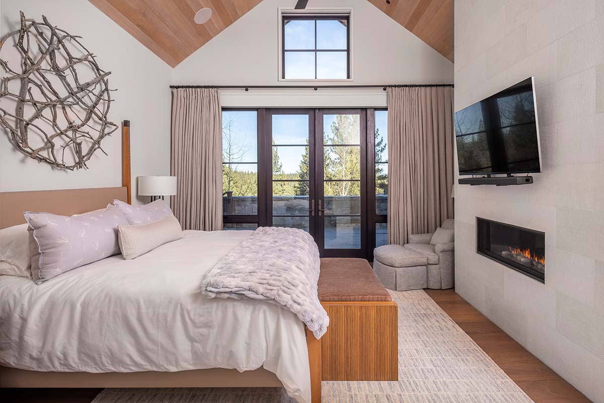 Can the simple act of stepping through a door elevate your frame of mind? In the case of this Martis Camp home, it’s practically guaranteed. Beyond its front door, a world of light and space unfolds. Lofty ceilings, abundant windows, a grand fireplace, and the allure of a large deck overlooking 2+acres greet you upon arrival to this 4,719 square-foot Martis Camp estate. It’s the picture of positivity, The elegant living space includes a great room, kitchen, bar, and dining room, all of which are connected by tall sliding glass doors to a deck with hot tub, firepit, covered/heated dining area, barbecue bay, mini fridge, and pizza oven. This 5 bedroom, 5.5 bathroom home’s primary suite has a fireplace and access to the hot tub. The spacious office adjacent to the suite also opens to the deck and hot tub. On the other wing of this home is a guest suite with access to the deck.